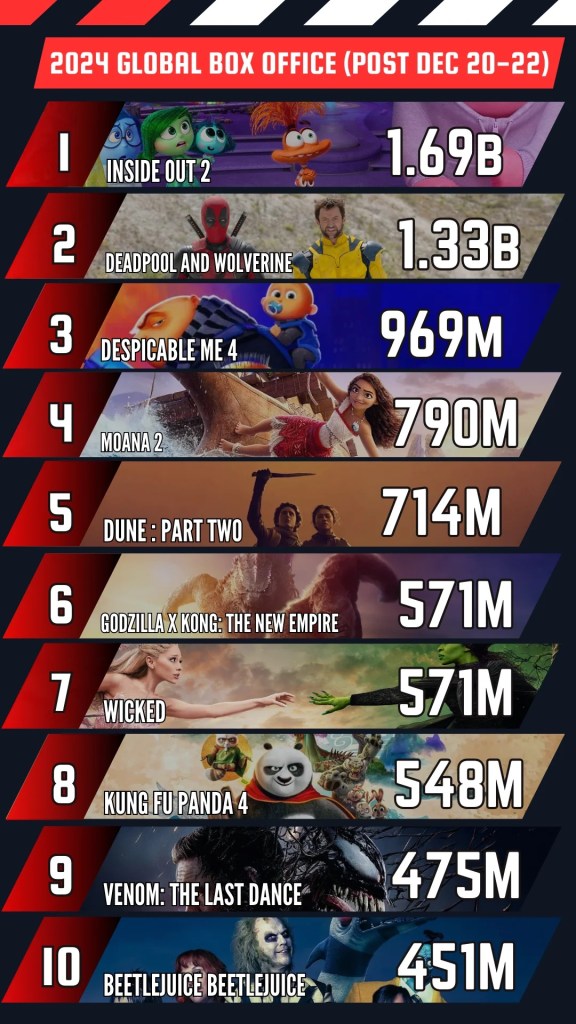 This year we saw Some unexpected Huge champions like Inside Out 2, Dune Pt2, Deadpool Vs Wolverine, and Wicked. While some brands maintained their “Sure Bet” status like Despicable Me and Moana, others saw some unique takeaways we can gather from these results.